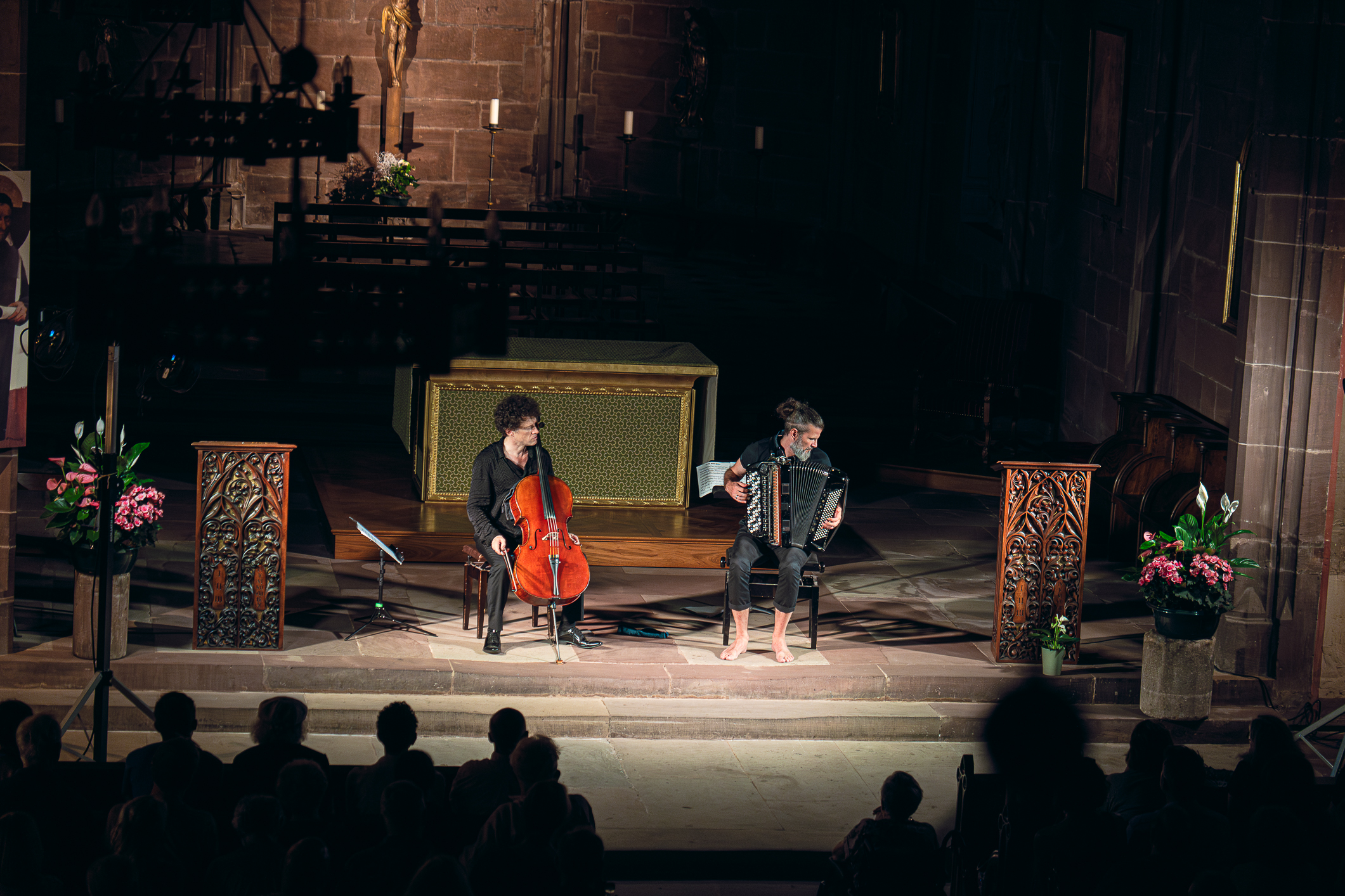 ― Le duo sensible et envoûtant Vincent Peirani et François Salque dans la majestueuse Église de la Nativité de Saverne, pour un moment presque méditatif.